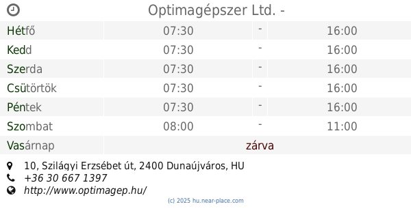 | Vasárnap | zárva | |||||