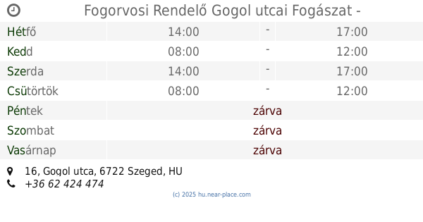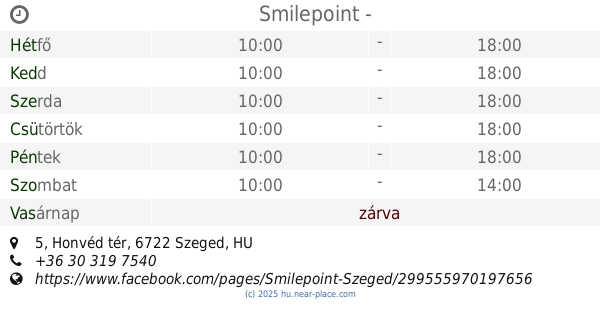 | Szombat | zárva | |||||