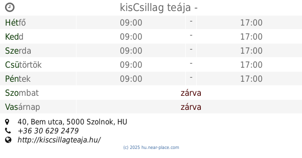 🕗 Nyitva tartás