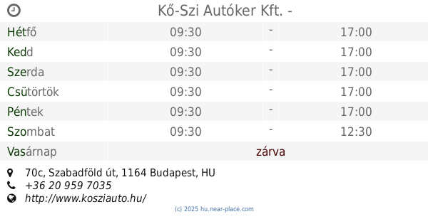 | Szombat | zárva | |||||