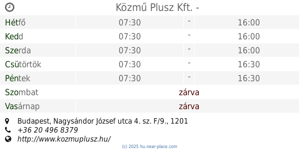 | Szombat | zárva | |||||