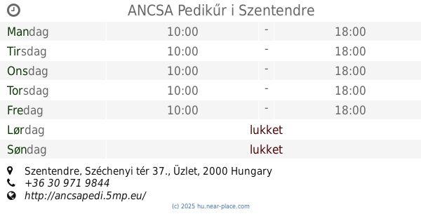 | Mandag | åben 24 timer | |||||
