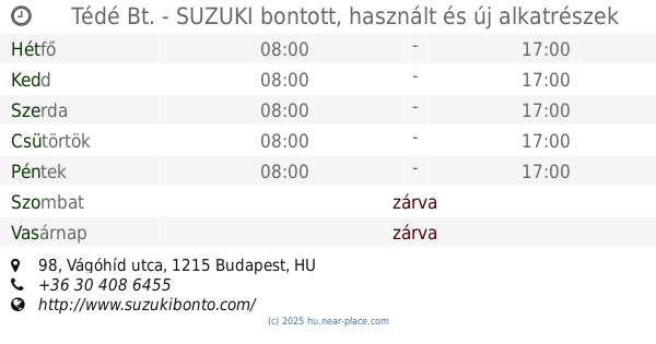 | Vasárnap | zárva | |||||