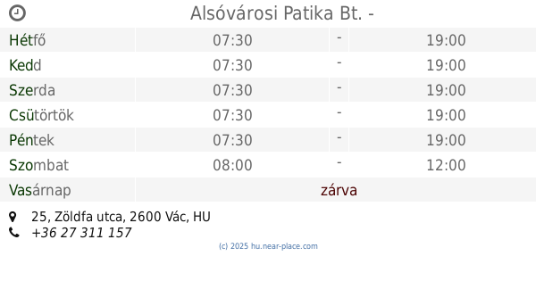 🕗 Nyitva tartás