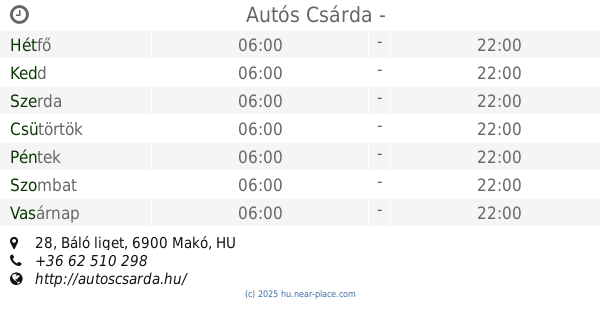 🕗 Nyitva tartás