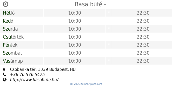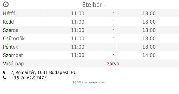 | Vasárnap | zárva | |||||