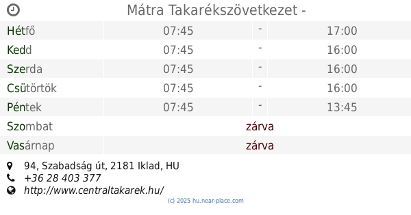 🕗 Nyitva tartás