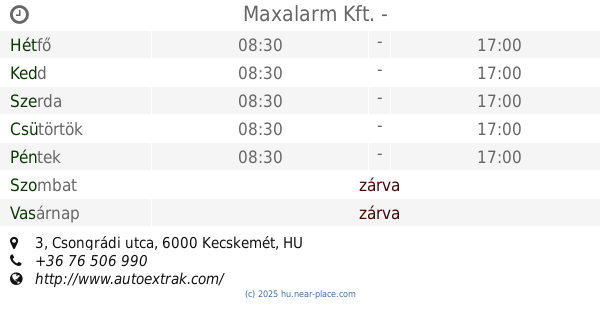 🕗 Nyitva tartás