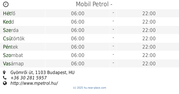 | Hétfő | nyitott 24 óra | |||||