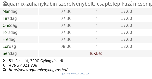 | Søndag | lukket | |||||