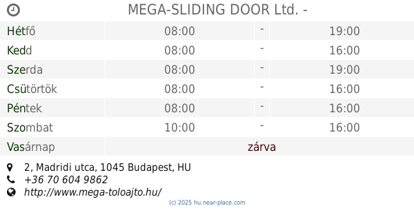 | Szombat | zárva | |||||