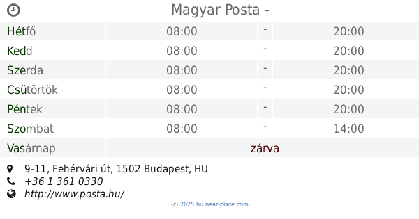 | Szombat | zárva | |||||