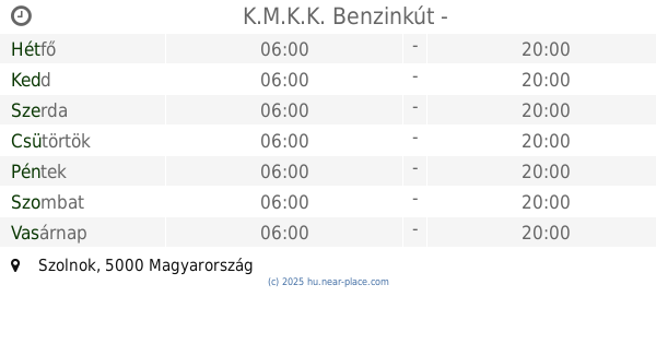 | Péntek | nyitott 24 óra | |||||