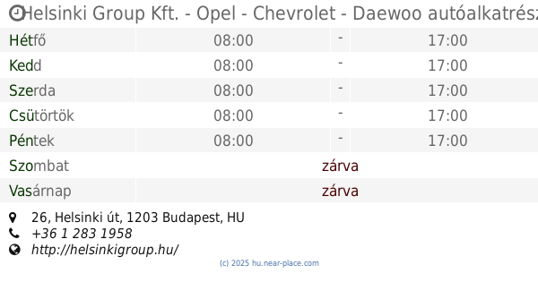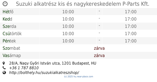 | Szombat | zárva | |||||