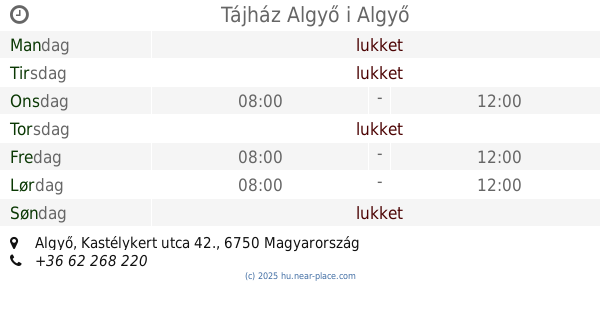 | Lørdag | lukket | |||||