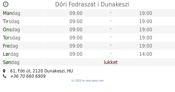 | Søndag | lukket | |||||