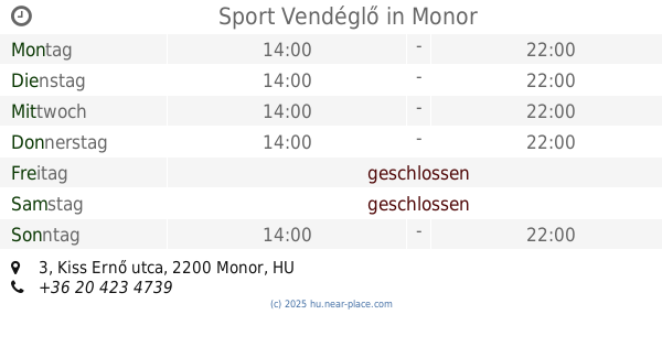 | Donnerstag | 24 stunden geöffnet | |||||
